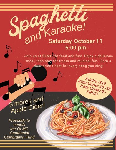 The mass was full and the music rang to the rafters! Our Guests from Our Lady of the Miraculous Medal felt our warm welcome and hospitality as they graciously joined our choir. Our cooks and kitchen helpers did a tremendous job. After a delicious spaghetti dinner, many enjoyed the beautiful evening singing their favorites and even dancing! Watch the video of the mass here. A special thanks to Ann Grossman for DJ-ing our karaoke! Proceeds from the dinner will benefit our Centennial Celebration Fund. Proceeds from the basket raffle will benefit our Vacation Bible School.